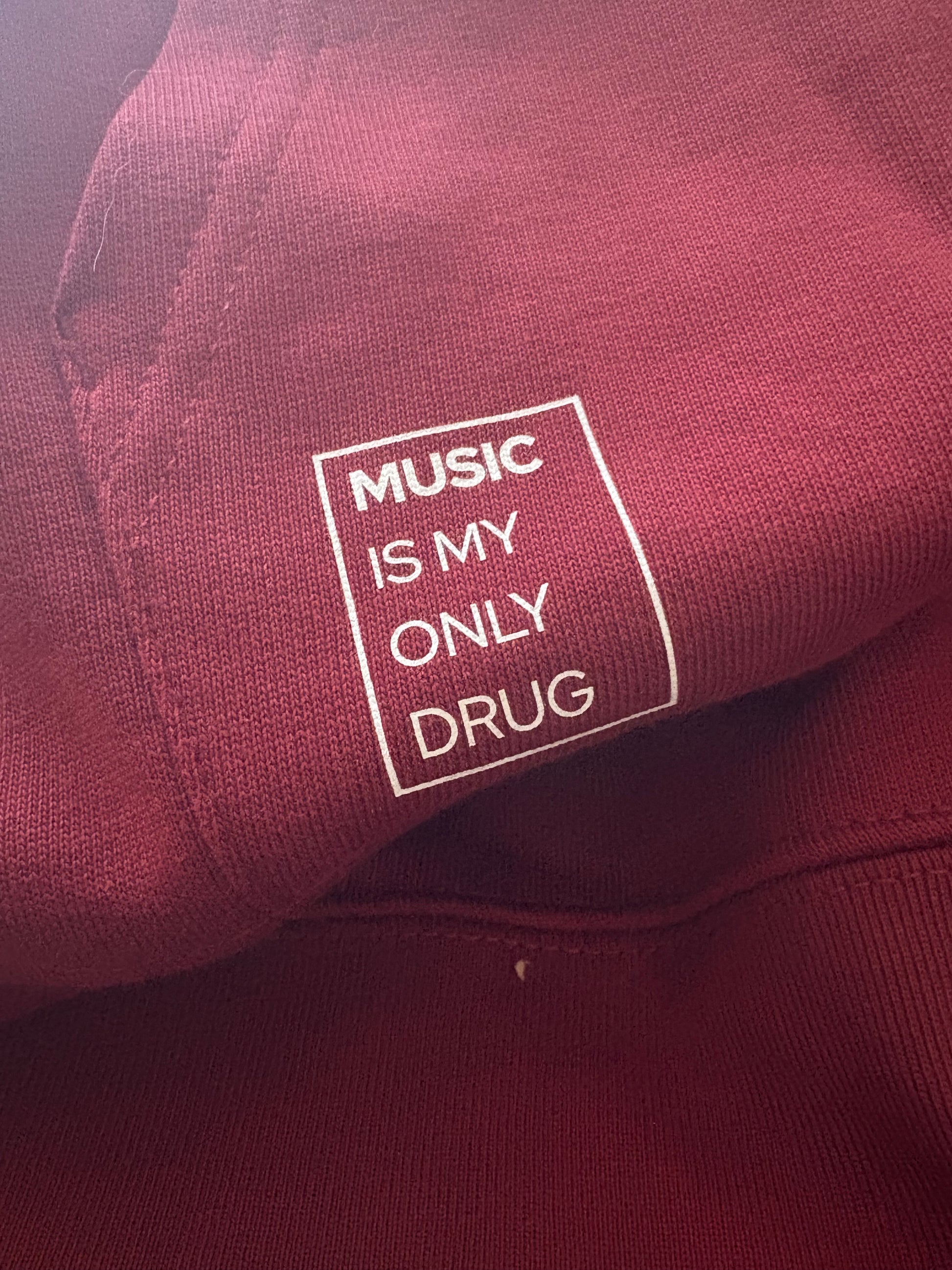 ✨ Un sweat à capuche bordeaux en coton bio, confortable et stylé, conçu pour les passionnés de musique et de streetwear responsable.