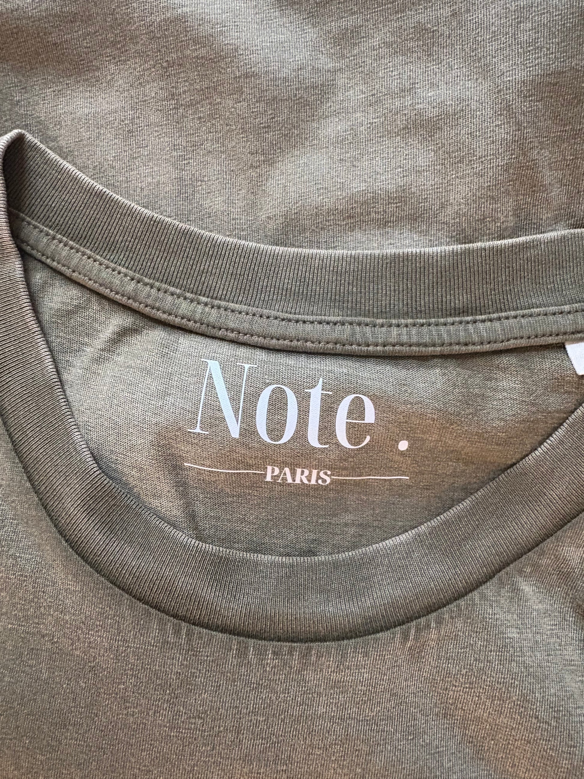 - Détail signature : Note de musique noire sur la poitrine, marquage intérieur Note.Paris